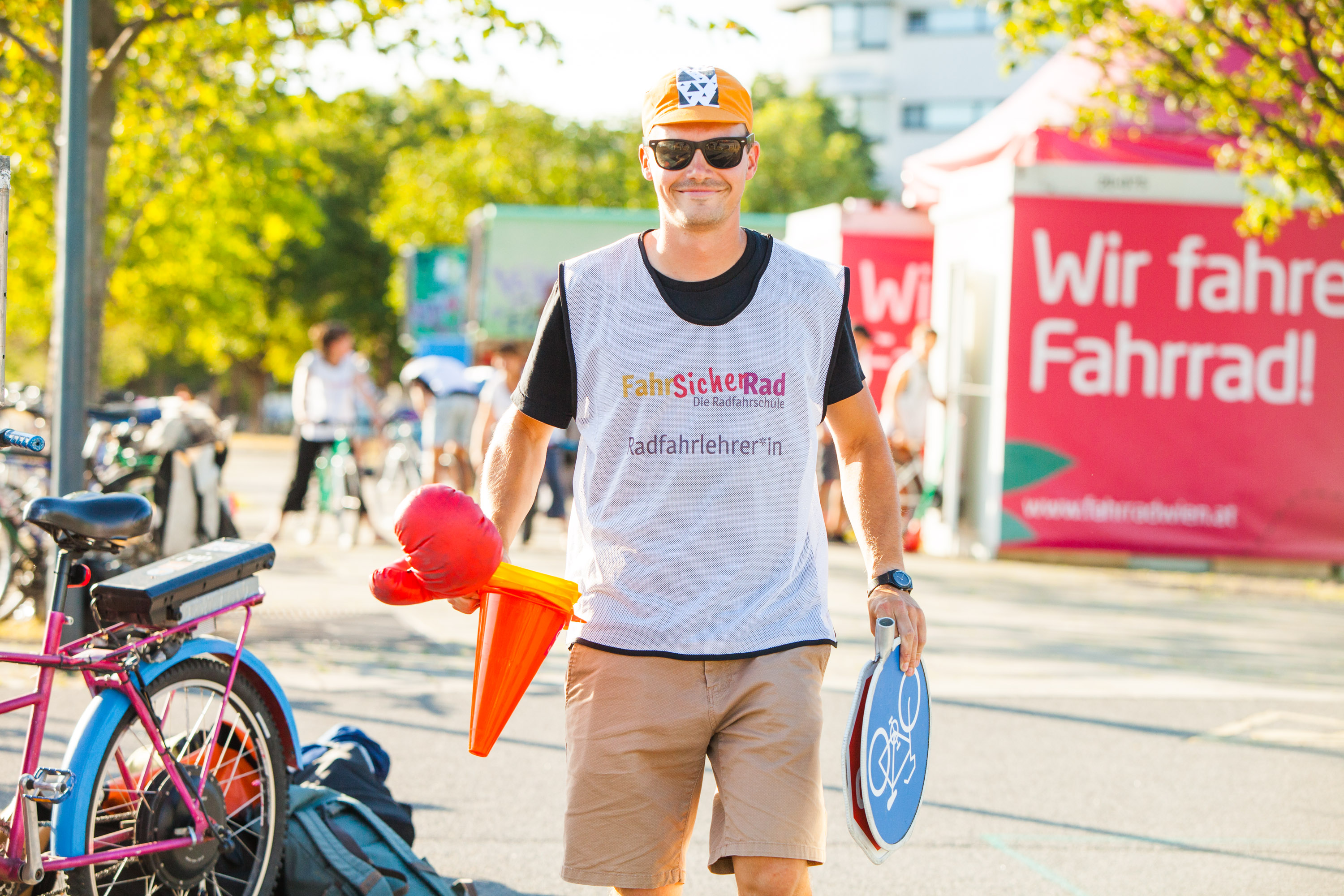 Philipp beim Ausbilden neuer Radfahrlehrer:innen in Wien